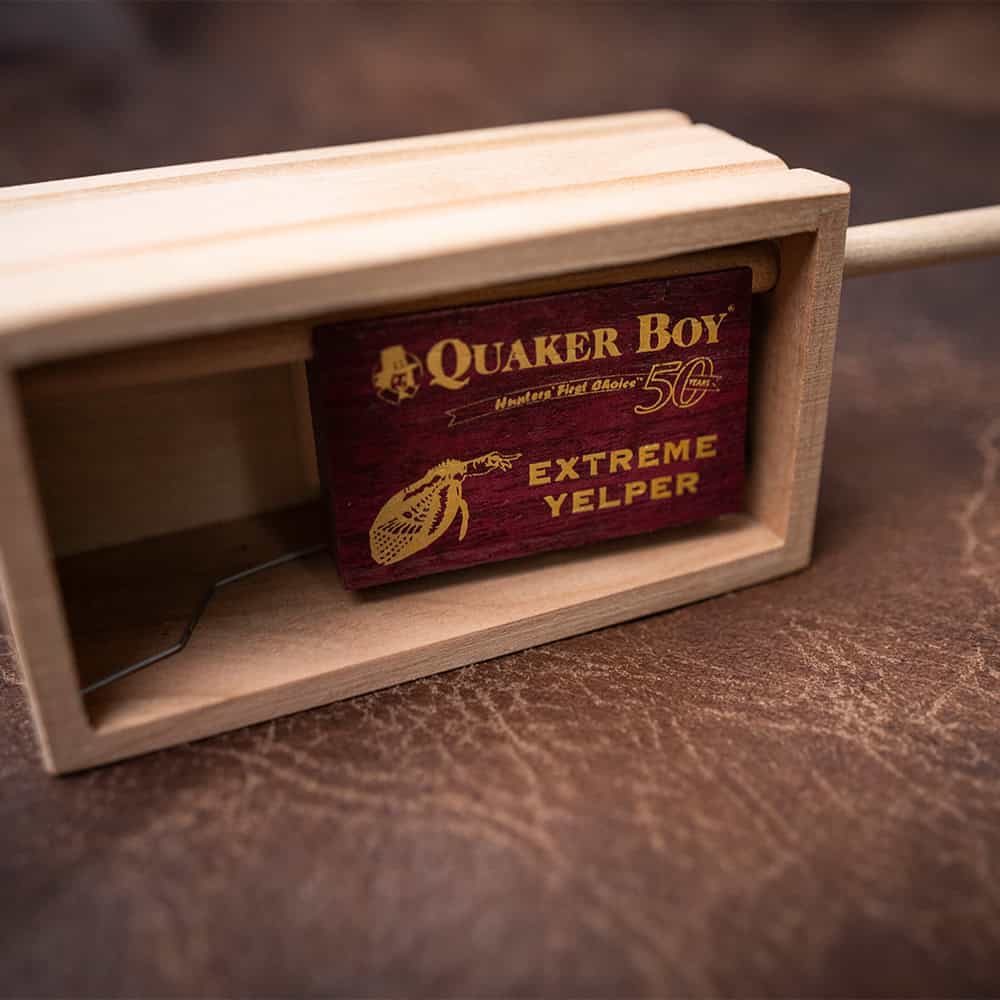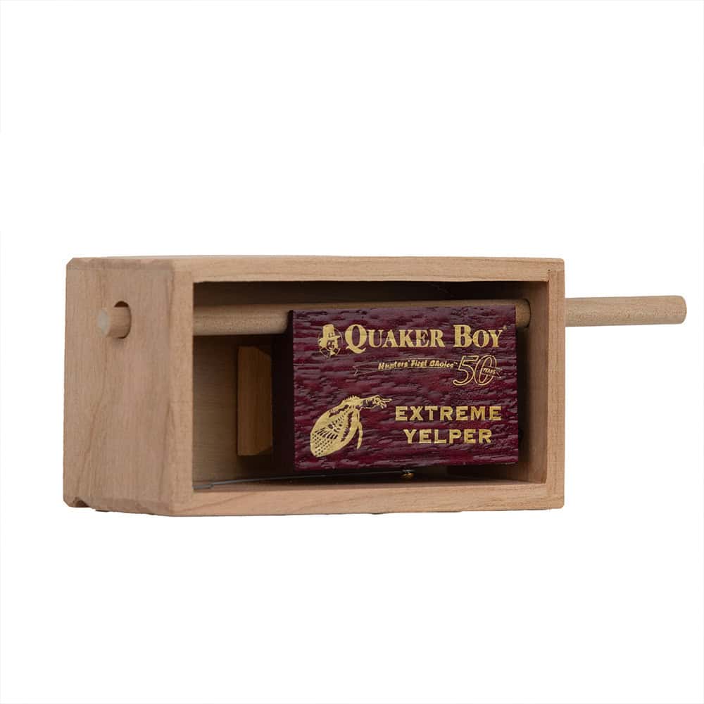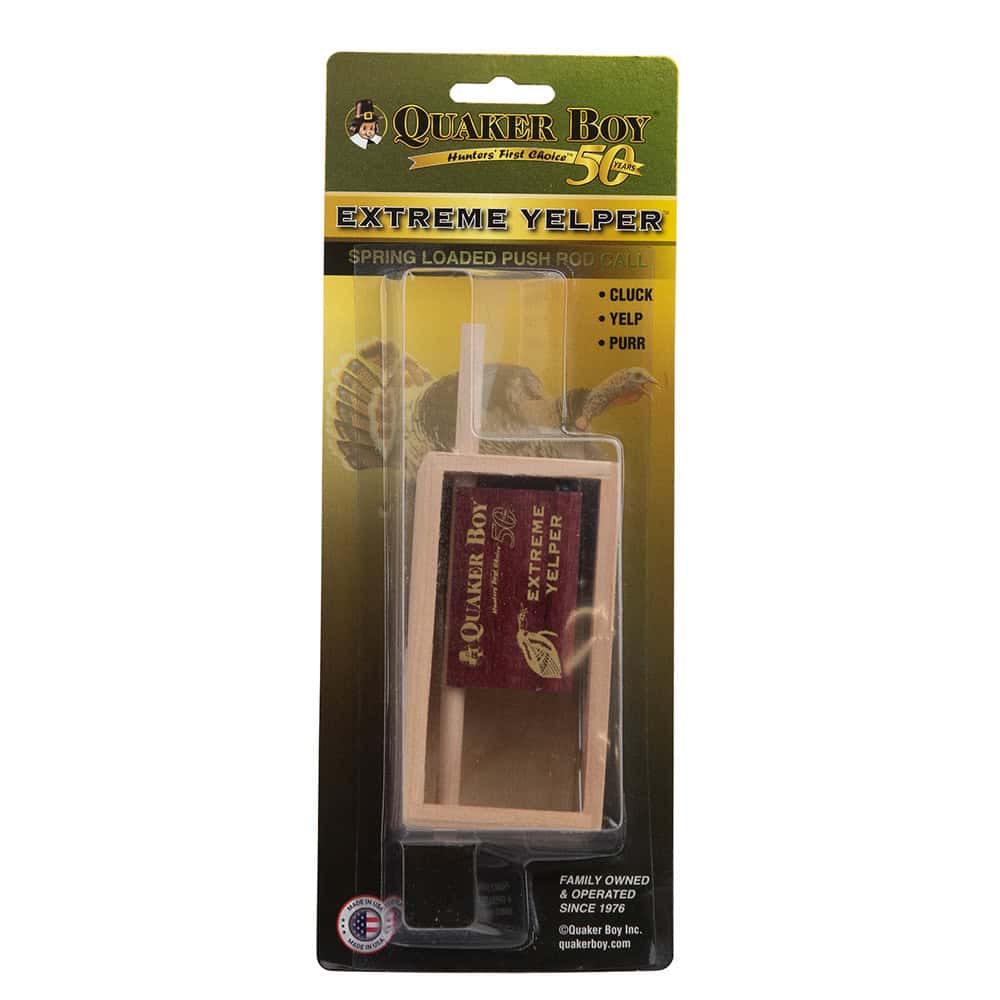 Quaker Boy®’s Extreme Yelper™ is hand-crafted from the finest materials with precision. The spring-loaded push rod design allows users to create authentic turkey tones with the push of a button. It produces exceptional yelps, clucks and purrs that resonate exacting turkey tones when your situation calls for it. Suitable for both experienced hunters and beginners, the Extreme Yelper ™ has proven its effectiveness both spring and fall for decades.