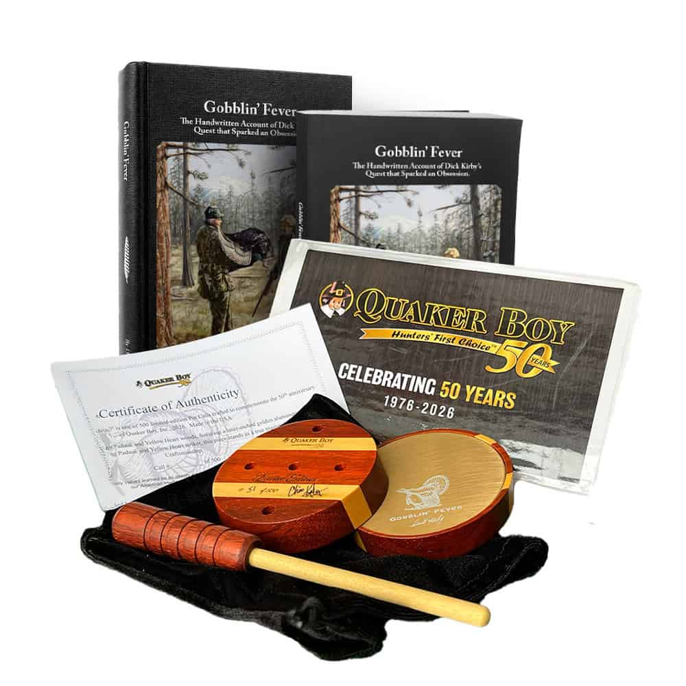 Gobblin’ Fever Pot is one of 500 limited-edition pot calls created to commemorate the 50th anniversary of Quaker Boy, Inc. Each piece is individually numbered, signed by Chris Kirby, and supported by a Certificate of Authenticity.